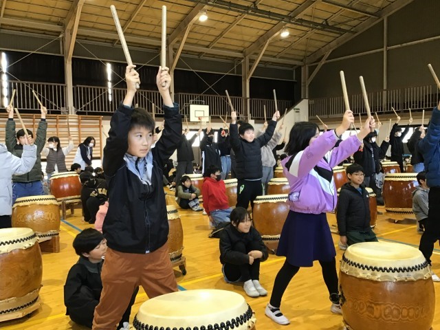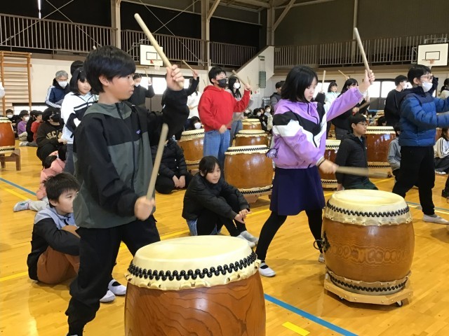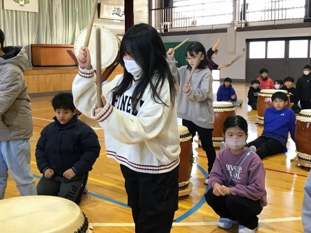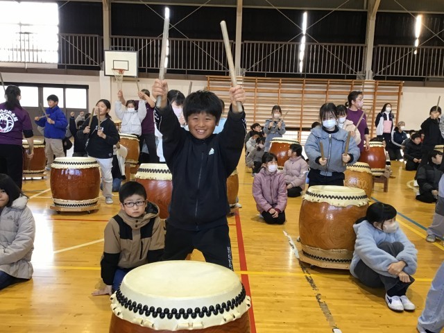 鑑賞教室でうねめ太鼓の演奏を聴きました。迫力のある素晴らしい演奏に、4年生の子どもたちも圧倒されていました。太鼓の体験もさせていただき、リズムに合わせて、かっこよく太鼓を叩くことを楽しんでいました。