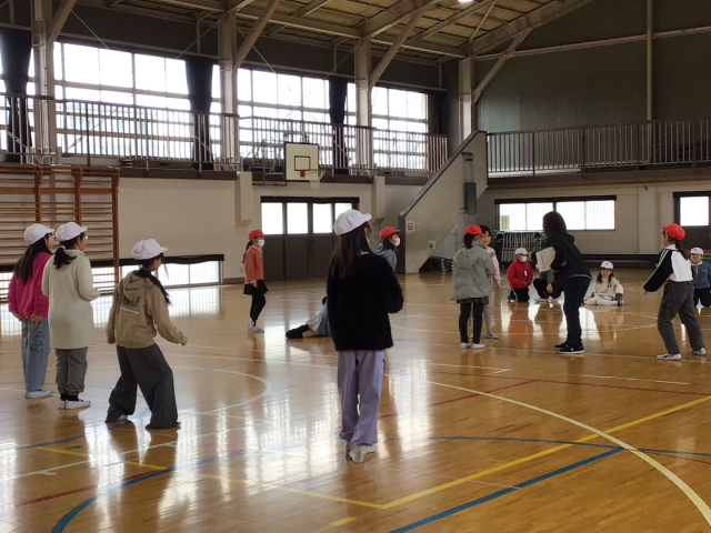 お世話になった6年生に感謝の気持ちが伝わるように、また6年生に楽しんでもらえるように、声の出し方や動き方を練習しています。