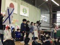 鑑賞教室でうねめ太鼓の演奏を聴きました。迫力のある素晴らしい演奏に、4年生の子ど...