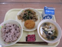 3月18日(水)の給食(食育の日献立および卒業お祝い献立)赤飯、牛乳、メンチカツ...