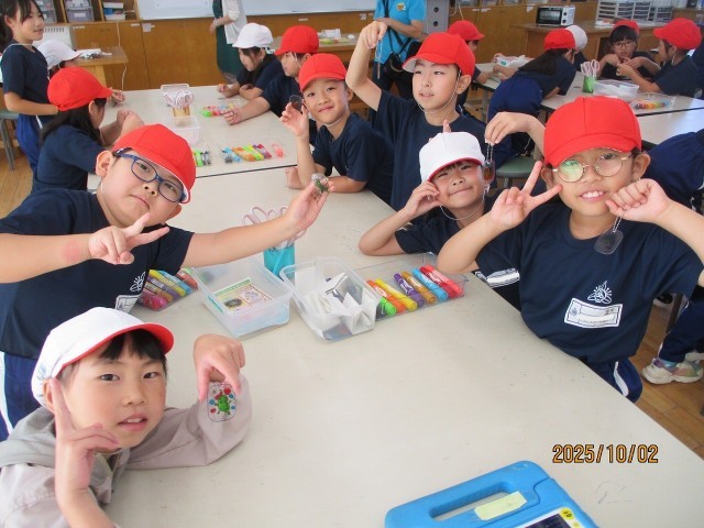 ミッション2は,プラバンキーホルダー作りです。作り方の説明をよく聞いて,それぞれに,すてきな..自分だけのキーホルダーを作りました。今日の思い出の宝物です。「お気に入り!大成功!」