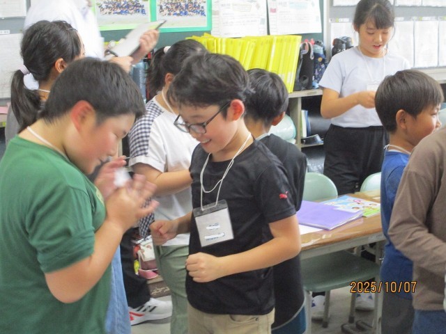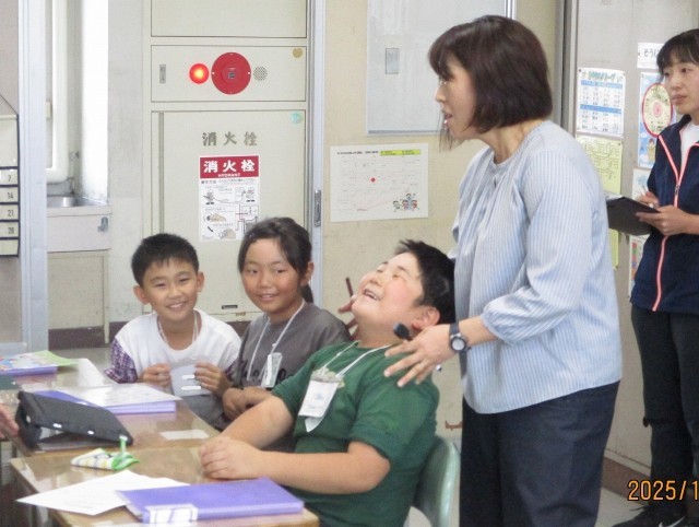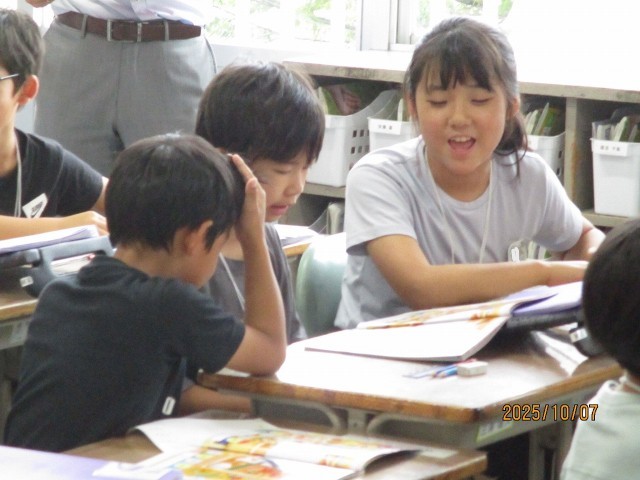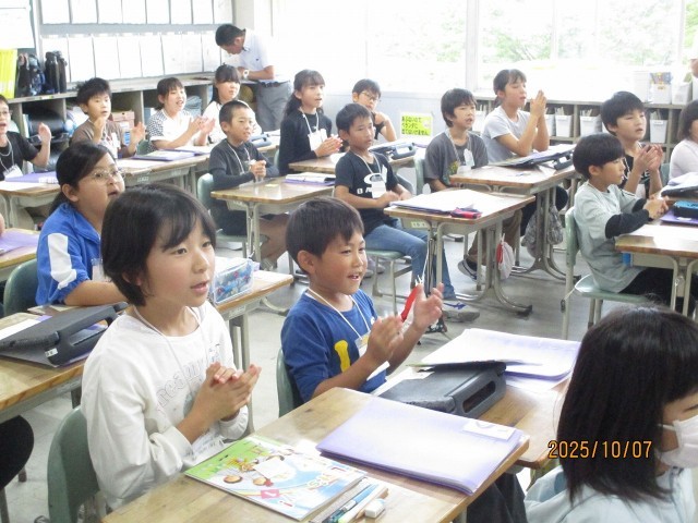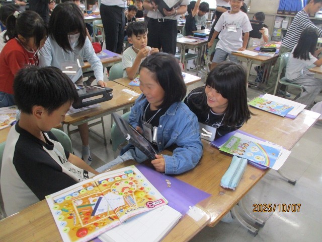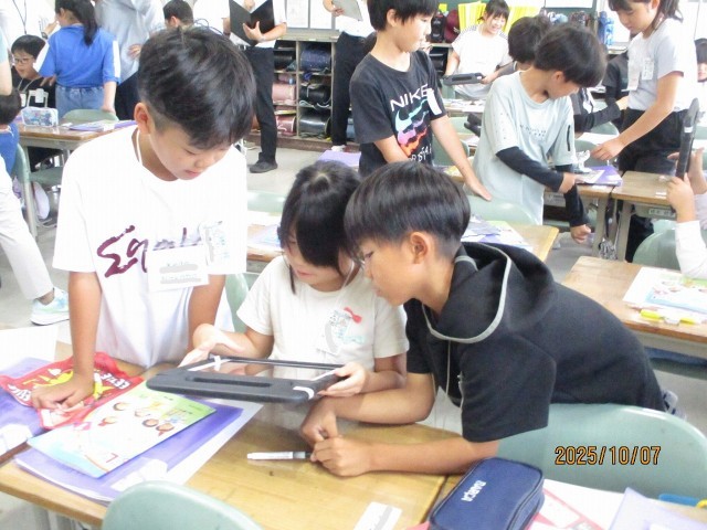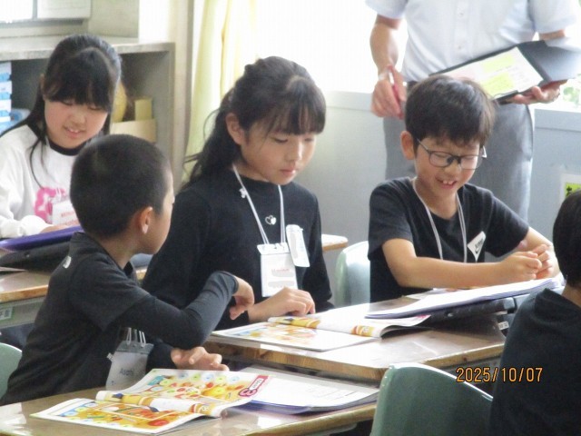 3年生 外国語活動の授業研究会です。「授業はテンポが命!」と言われます。子ども達にとって,心地よいテンポ!楽しいテンポ!やる気になるテンポ!(その中に,誰一人取り残さない立ち止まりやメリハリ.ケジメもしっかりと)身の回りにあるアルファベットを3人トリオグループで探してタブレット記録。ロイロで共有して,授業後半は,アルファベット当てクイズを楽しみました。楽しみながら英語が(授業が)大好きになる時間でした。授業者から子ども達への『ほめことば』がいたるところにちりばめられた..心地よく/勢いのある/楽しい授業でした。