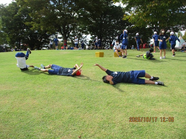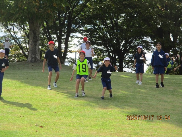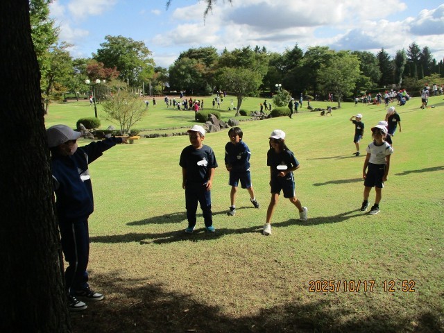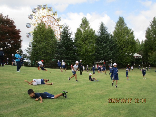 お弁当の後は,芝生広場で..たっぷりと遊びました。坂をコロコロ..(前回りも..ちょっと苦手だった後ろ回りだって,ここでならできちゃいます!)1年生でも楽しめる遊びを計画してきましたから..みんなこんなにも楽しいはずです。「来年もまた来たいなぁ~!」「もっと,3時までいたい!」解散式では,みんなが一斉に「楽しかった!!」~よかったです。