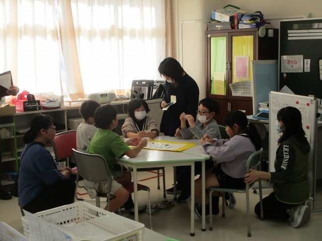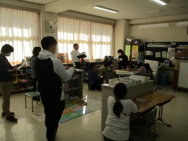 さくら1組の自立活動授業研究会でした。「どんな気持ち?ゲーム」を通して,自分の気持ちと友だちの気持ちの違いに気づく経験をねらった授業でした。「日曜の朝に,お父さんからとつぜん,遊園地に行こう!と言われたら..どんな気持ち?」「給食はカレーライスでした。夕食もカレーライスだったら..どんな気持ち?」子ども達は,それぞれに自分の気持ちを“気持ちチップ”表示で表し,言葉で伝え合いました。~「わかるぅ~」「私は〇ちゃんの気持ちわかるよ」「ぼくは..」それぞれに気持ちを聞き合い,わかり合おうとする姿が見られました。最後には,みんなで仲良くすごろく遊び~『順番やルールを守ることも..友だちの気持ちをわかろうとすることとつながっていました』(私たちは,あらためて,このような経験の積み重ねが大切なのだということを確かめました)