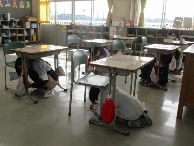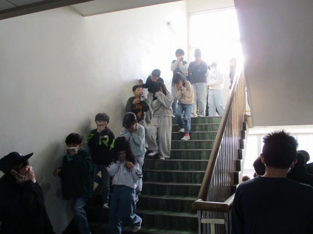 (※予告なし)避難訓練を実施しました。業間の休み時間に,地震発生「シェイクアウト!」~続いて給食出から火災発生を想定した訓練でした。校庭で遊んでいた子ども達も,すばやく校庭中央に集まって姿勢を低くして待ちました。図書室にいた多くの子ども達も即シェイクアウト。放送と司書の先生の指示で,整然と避難経路に合流することができました。いつ,どんな状況下でも,「命を守る行動」を最優先にして,安全安心を確保することに努めていきます。
