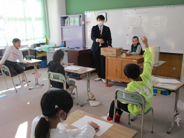 さくら2学級の授業研究会でした。『箱の中身は何だろう?』~ルールやマナーを守って,みんなでゲームを心地よく楽しむことをねらっての時間です。先生が,箱の中に入れたものを当てたくて..「大きさはどのくらいですか?」「色は何色ですか?」「落とし物ですか?」「折り曲げられますか?」子ども達からは,次々と質問が出されて,「わかった!」~ろうかで先生に,ヒソヒソと..。「大せいかい!」楽しくて,3問の予定だったゲームが,4問も5問も続きました。この後も,「〇君が箱に入れて問題にしてもいい?」楽しいゲームの時間が流れました。参観者の私達も質問して..当てたかったけど,ハズレちゃいました。