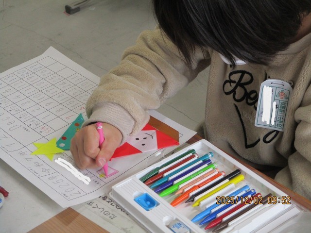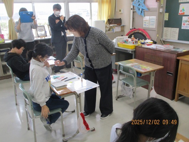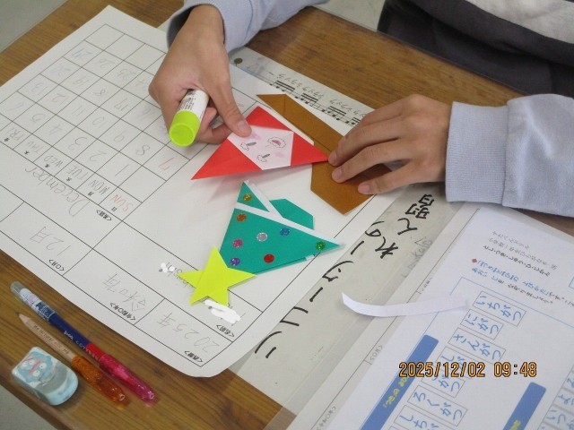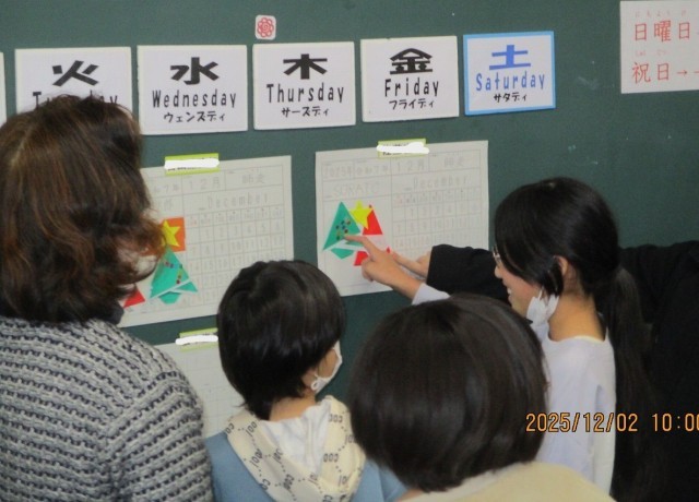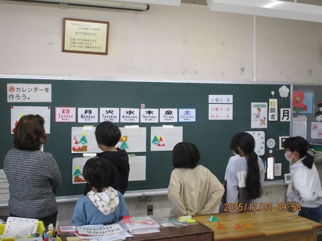 かきのき2学級の自立活動授業研究会です。「12月のカレンダーを作ろう!」月や曜日を♪英語の歌で楽しく確かめて,日にちもていねいに書き込みました。折り紙で作ったクリスマス飾りを思い思いに貼って,自由な絵で書き込みを加えると,自分だけの素敵な作品になりました。黒板に貼って,みんなで「いいな」と思うところを言い合って..ニコニコです。サンタさんが来る日が待ち遠しくなりました。