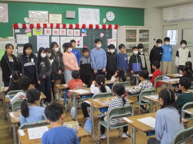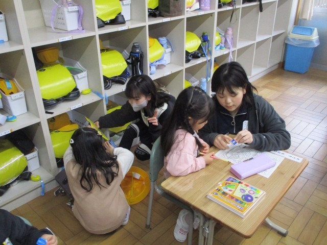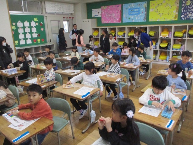 「1年生のものがたり」がはじまりました。集団登校でしっかりと歩いてきましたよ!教室でランドセルから..。初めてのことがいっぱい。「でも,だいじょうぶ」6年生のお兄さんお姉さんが教室で待っていてくれました。「連絡帳はここにね。」「これは,机の中だよ。」「終わったら,ぬりえができるね。」「じょうずだね。」~6年生のことばやふるまいに感心しきりの朝の教室風景でした。~明日も元気に学校に来てね!