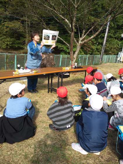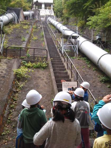 発電所の方から、お話を聞きました。真剣にメモをしています。
