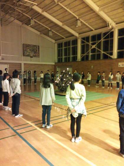 体育館でキャンドルファイアー開始。何やら荘厳な雰囲気です。