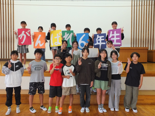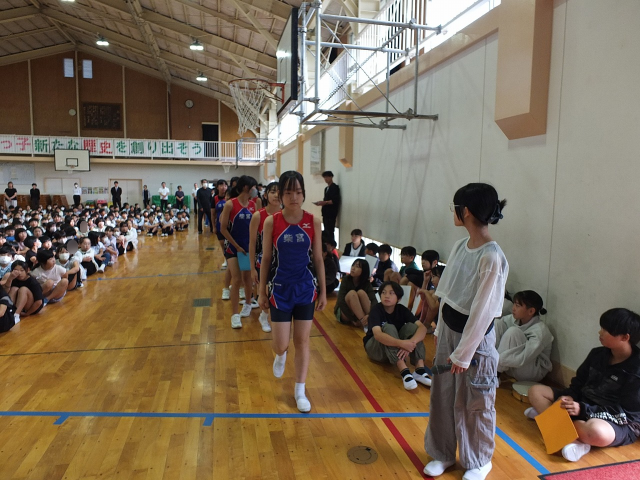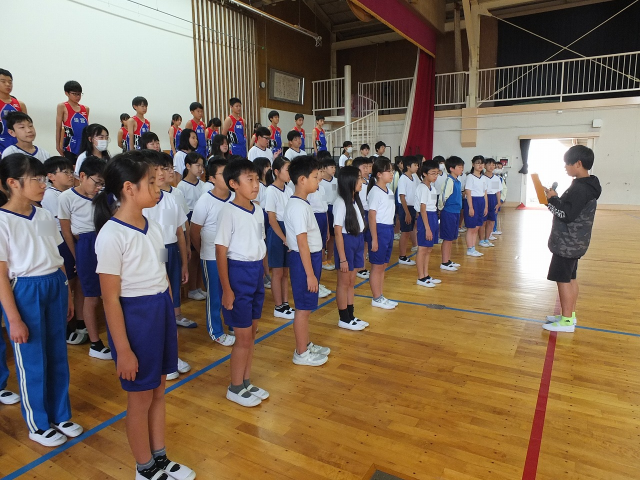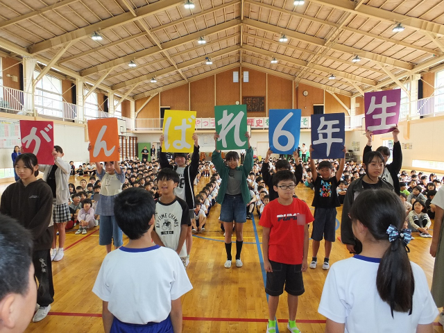 10月8日(水) 令和7年度の郡山市小学校陸上交歓会が開催されます。それに先駆け、先週金曜日、5年生の応援団が中心となってこの大会に出場する「6年生を励ます会」が行われました。