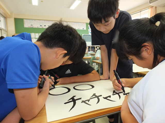 いよいよ明日、6年生が市陸上競技交歓会に出場します。開成山陸上競技場のトラックで、フィールドで頑張る友達を応援するための準備も進められました。