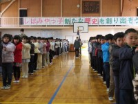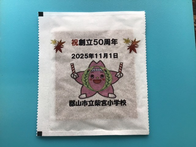 「菜飯・牛乳・手巻き海苔・エビフライ・ツナサラダ・すまし汁・デザート」です。エビは「腰が曲がるまで長生きできますように」と長寿の意味をもつ縁起の良い食べ物とされています。子どもたちの好きなエビフライにしました。菜飯ご飯を手で巻いて食べる手巻きごはんは、ツナサラダを具にしても、エビフライと菜飯で巻いてもそれぞれ自由に食べていたようです。柴宮小のキャラクター「しばたん」のプリントがついた手巻き海苔で楽しくお祝いしながら食べました。