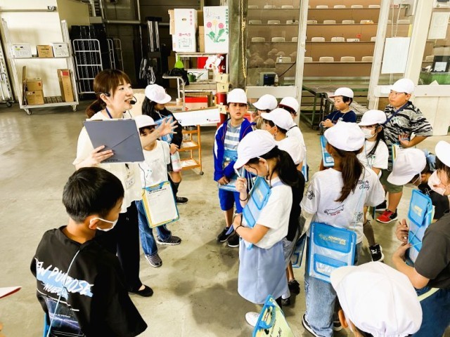 食品工業団地では、エネルギーの一括調達や排水の一括処理、できた食品の一括検査など、食品工場が協力していることを知ることができました。
