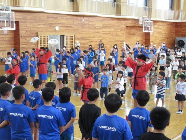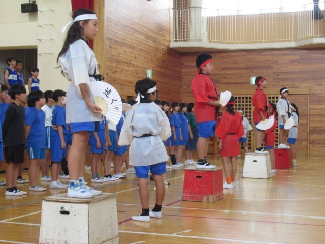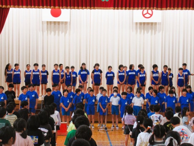 9月29日(月)です。今日の児童集会は、10月に行われる「小学校陸上競技交歓会」への応援です。
