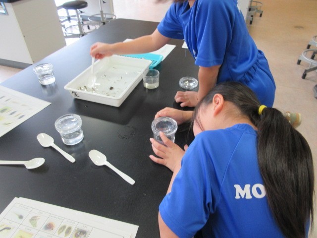 サイエンスショーで不思議な現象を目の当たりにし、水生生物の観察や森で見つかる材料をもとにした作品作り、画用紙を用いた紙トンボの作成など、普段の学校では体験できないことをたくさん学ぶことができました。