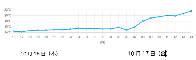 10月18日(金)です。昨日は寒いくらいの一日で、今日は一転して暑いぐらい…。