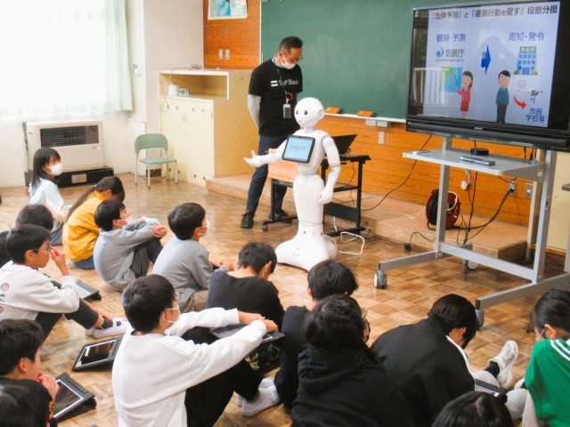 ペッパー君といえば、今まで情報モラルや情報機器の使い方について授業をしてきました。今日は、地球温暖化がもたらす「気候変動」と災害について、6年生と一緒になって考えてくれました。さすが時事ネタも強いAIロボットだなぁ…と思いました。