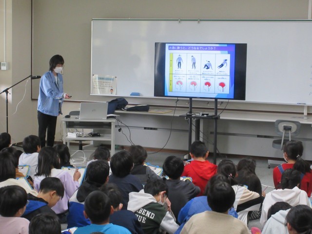 5年生は健康学習です。市の健康増進係より半澤様をお招きし、喫煙や飲酒のリスクについて学びました。