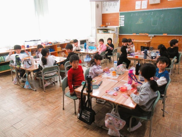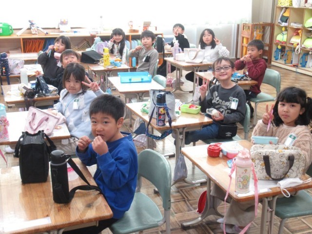 子どもたちは「おいしい」、おいしい」と笑顔で食べていました。ご家庭では、早朝より準備されたと察するところです。ありがとうございました。