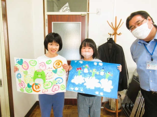 放課後、教頭先生とお話していたら、描いた絵を紹介するのに2人が校長室まで来てくれました。