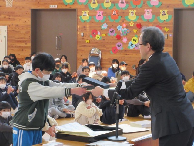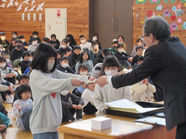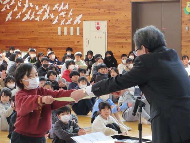 3月16日(月)です。今日の全校集会では、様々なところで活躍し、入賞した子どもたちを表彰しました。