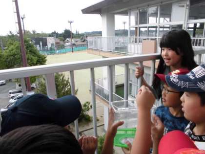 笑顔で手をふりながら、モンシロチョウを見送る子ども達の姿が見られました。みんなで育てたモンシロチョウが元気に外を飛び回っていますように!