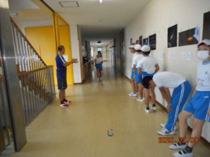 写真は、校舎内で練習をするハードル走のメンバーたち、そして、校庭での持久走の練習です。