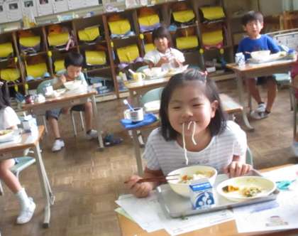 おいしい給食、苦手なものも残さないで食べられるように、頑張っています。