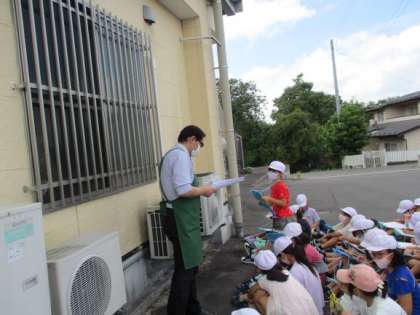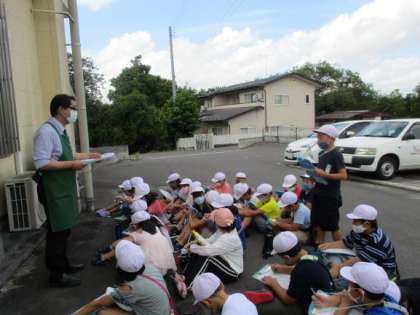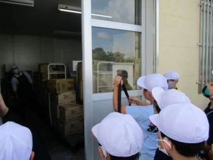 質問をして、店長さんに答えていただくと、「え〜!」「そうなんだ!」と驚きの声が上がりました。バックヤードも覗かせていただきました。お家の人もよく利用していて、子どもたちも買い物に行ったことのあるお店ですが、はじめて知ることがたくさんありました。