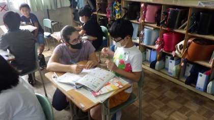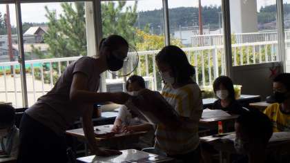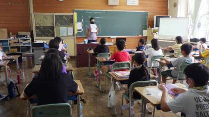 今日の英語の学習は、AETのマネカ先生との学習でした。前回の学習を生かしながら、家族の紹介を考えました。それぞれ考えた紹介をスピーチすることができました。