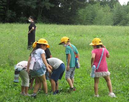 そして、ちょっと足をのばして、神社手前の草原で虫探しをしました。