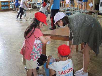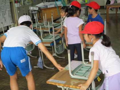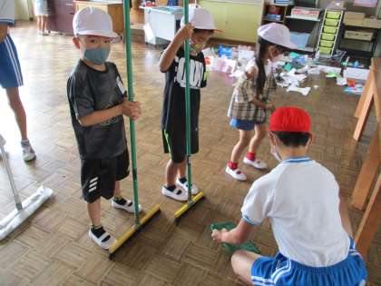 1年生と6年生は、今日もいっしょにお掃除を頑張りました。ぞうきんの絞り方や床の履き方も、とっても上手になった1年生。6年生は、1年生の動きを見ながら、高いところや細かいところをサポートします。「ご苦労様でした!」と、お互いにあいさつをして、無事終了です。これからも、協力し合ってお掃除しましょう!