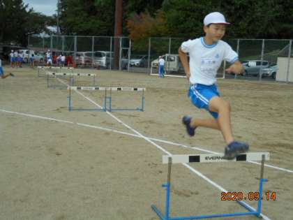ハードル走も、歩幅やスピード、脚の振り上げ方などを入念に練習していました。100m走も、競い合いながら、記録の更新を目指し、繰り返し練習していました。