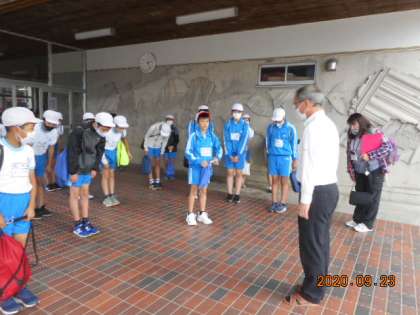 各種目に出場する選手の6年生が、現地での初めての練習に向けて出発しました。