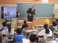 2組は、遮光プレートを使って太陽を見て、太陽とかげの位置を確かめました。遮光プレートごしの太陽は、きれいな黄緑色でした。