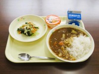 今日の給食のメニューは、麦ごはん、牛乳、生揚げの肉みそ煮、海苔和え、小魚のつくだ煮です。