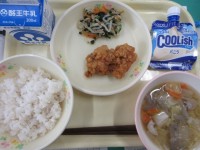 本日の給食は6年生のリクエスト給食です。唐揚げのいい匂いが朝から校舎内に漂っていました。サプライズデザートは、まさかのアイスです。学校給食でアイスが出た!と、大喜びの子どもたちでした。