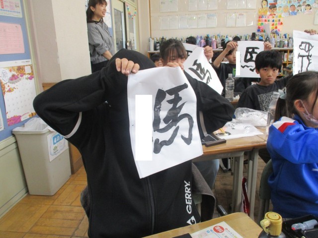 速く走るイメージでさっと書いたり、力強いイメージで太くしっかり書いたり、それぞれ工夫した字を書くことができました。