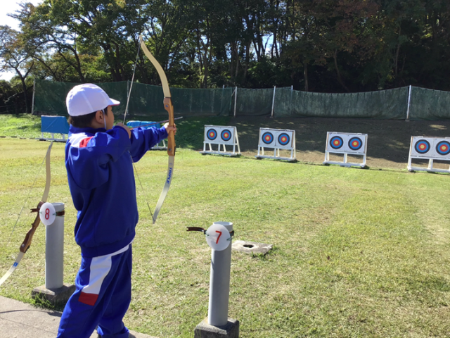 アーチェリー、フリスビーゴルフ、アスレチックなど、秋晴れの空の下思い切り体を動かしました。