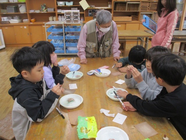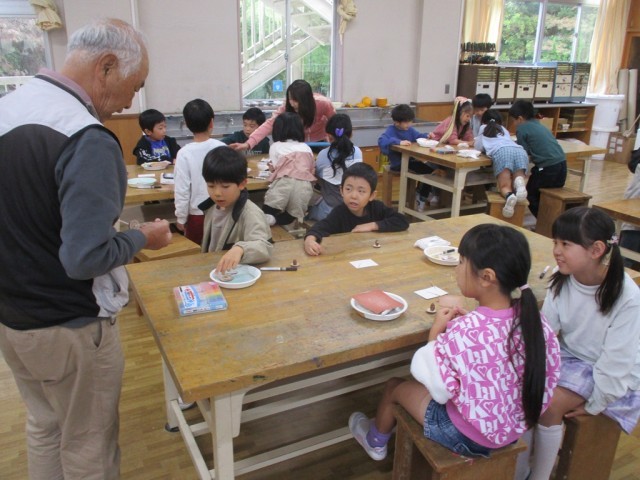 1年生が、「森の案内人」の皆さんを講師に、木工細工を作りました。