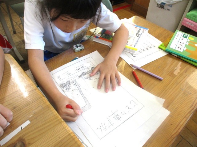 1年生が、国語の学習で「じどう車ずかん」をつくりました。