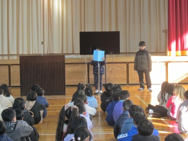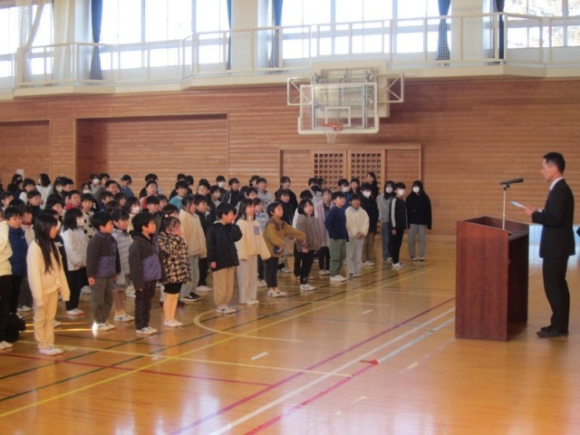 終業式では、校長からのお話のあと、1年生・3年生の児童の作文発表がありました。それぞれ、自分の学びを振り返り、全校生に伝えていました。