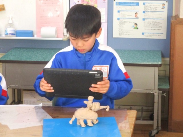 2年生が図工で思い出を粘土で形に表現しました。