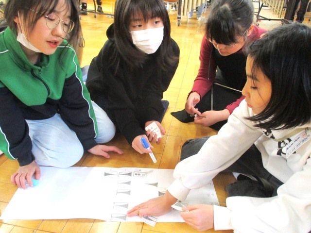 グループで楽器の種類や組み合わせを考え、リズム、テンポをどうするか、話し合って曲作りをしました。