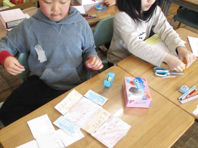 2年生が算数で箱を作りました。
