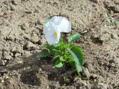 しっかりと根付いたのでしょう。花壇のパンジーが咲きました。