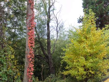 校舎裏のツタが日増しに赤い色が濃くなっています。とてもきれいです。