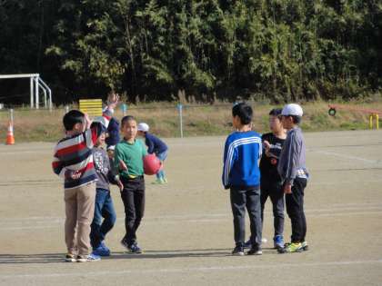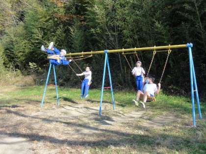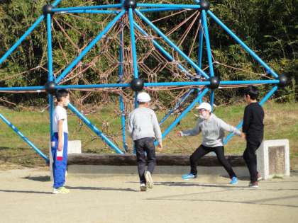 澄み切った青空の下、子ども達は元気に遊んでいます。