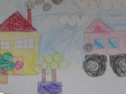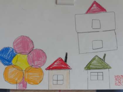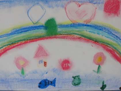 1年生は形を写して、2年生はクレヨンをぼかして描きました。